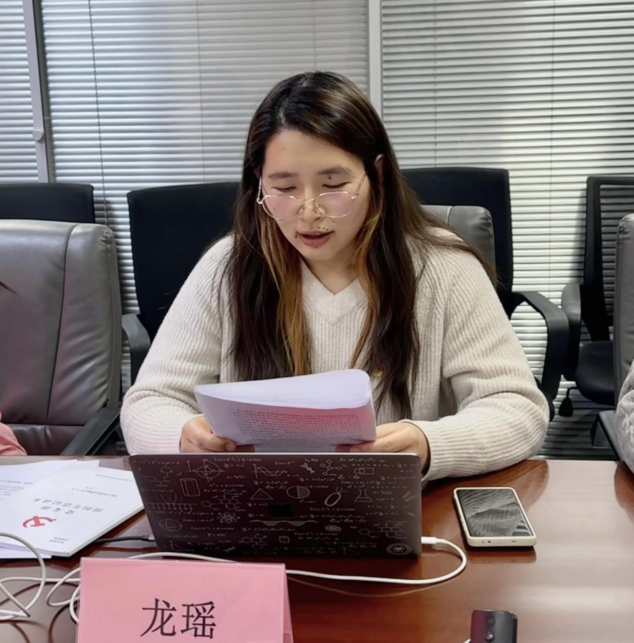 新当选的党支部书记龙瑶作表态发言。她表示,将以身作则坚守初心使命,未来将从四个方面开展工作: